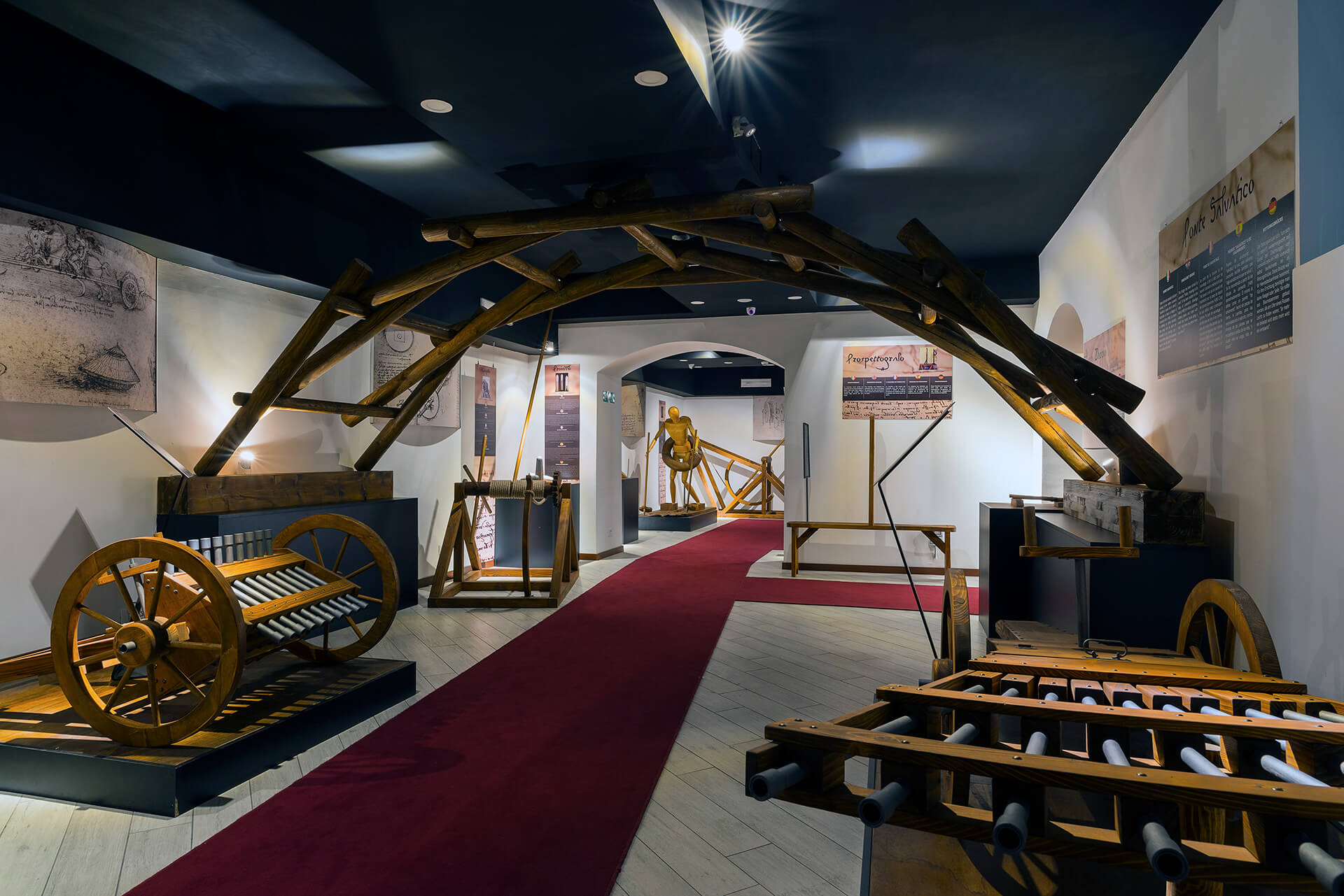 En passant d’une salle à l’autre, vous aurez l’impression de vous trouver véritablement dans la tête du Génie. Il existe pas moins de 50 machines en exposition, dont les prototypes du Deltaplane et de la Vis Aérienne, mais aussi des machines de guerre comme la catapulte, la mitrailleuse à tir en éventail et la bombarde, ou encore la chambre des miroirs avec ses huit parois en miroir permettant d’observer un objet sous tous les angles sans avoir à le déplacer.